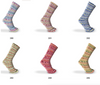 Avec Kalevi de Katia, un joli mélange de laine mérinos et polyamide pour des bas doux, chaud et amusants! Des rayures joyeuses à motif d'inspiration norvégienne qui plairont à toute la famille.