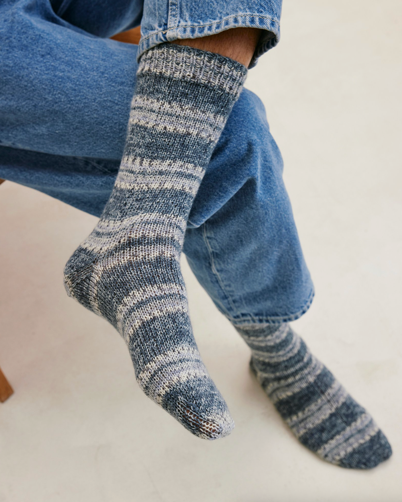De toutes jolies chaussettes au patron très faicle pour adulte! Réalisez de superbes bas à l'aide de la Phildar Phil Baby + Socks Mérinos.