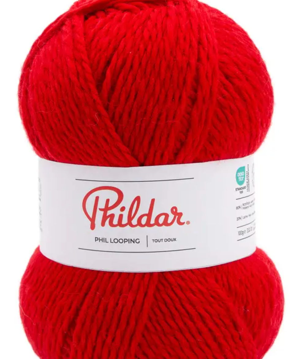 Le Phil Looping de Phildar est parfait pour des chandails, accessoires et couvertures qui se réalisent vite! Le fil est très doux, rebondissant, rond et facile à tricoter. La balle est généreuse puisqu'elle contient 163 mètres; trois balles suffisent amplement pour réaliser un pull pour enfant!
