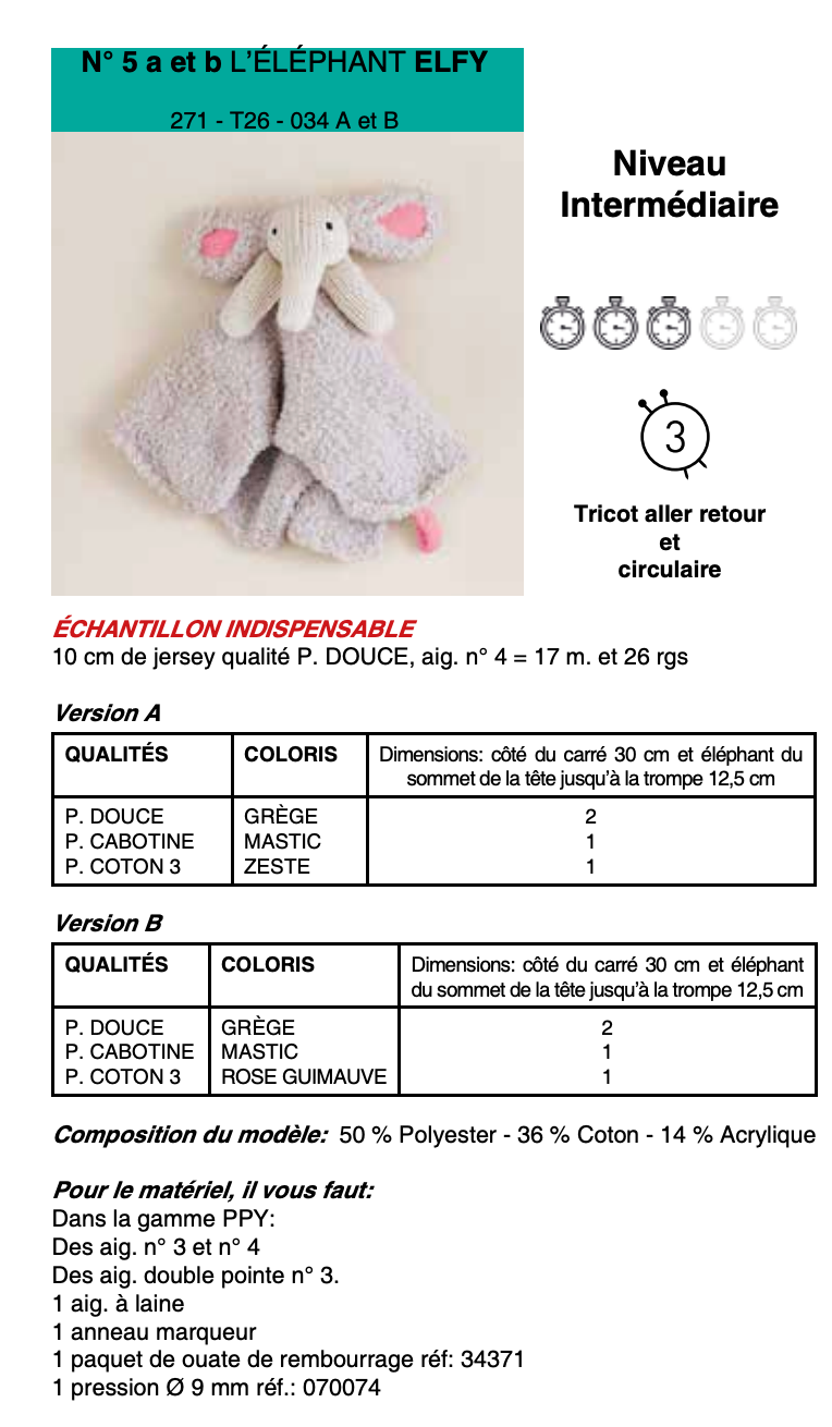 Patron du doudou Elfy, explications en français, niveau intermédiaire, au tricot.