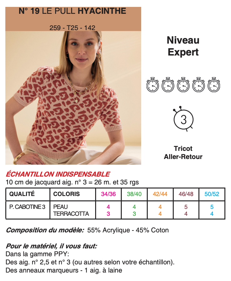 Patron du pull Hyacinthe de Phildar, explications en français, niveau expert, au tricot.