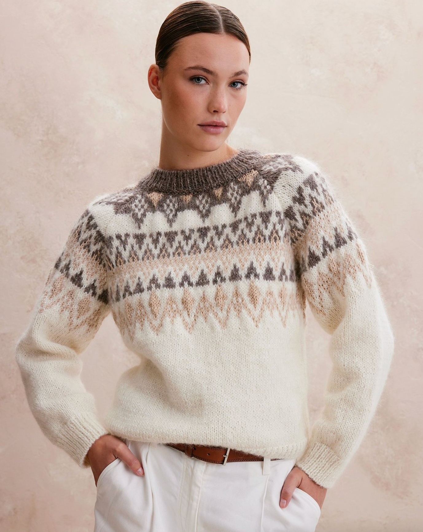 Magnifique pull à motif style norvégien pour adulte. Tricoté avec la Phildar Phil Soie Mérinos, Phildar Phil Chic et Phildar Phil Irlandais. Réalisé en aller-retour avec plusieurs pièces à assembler.