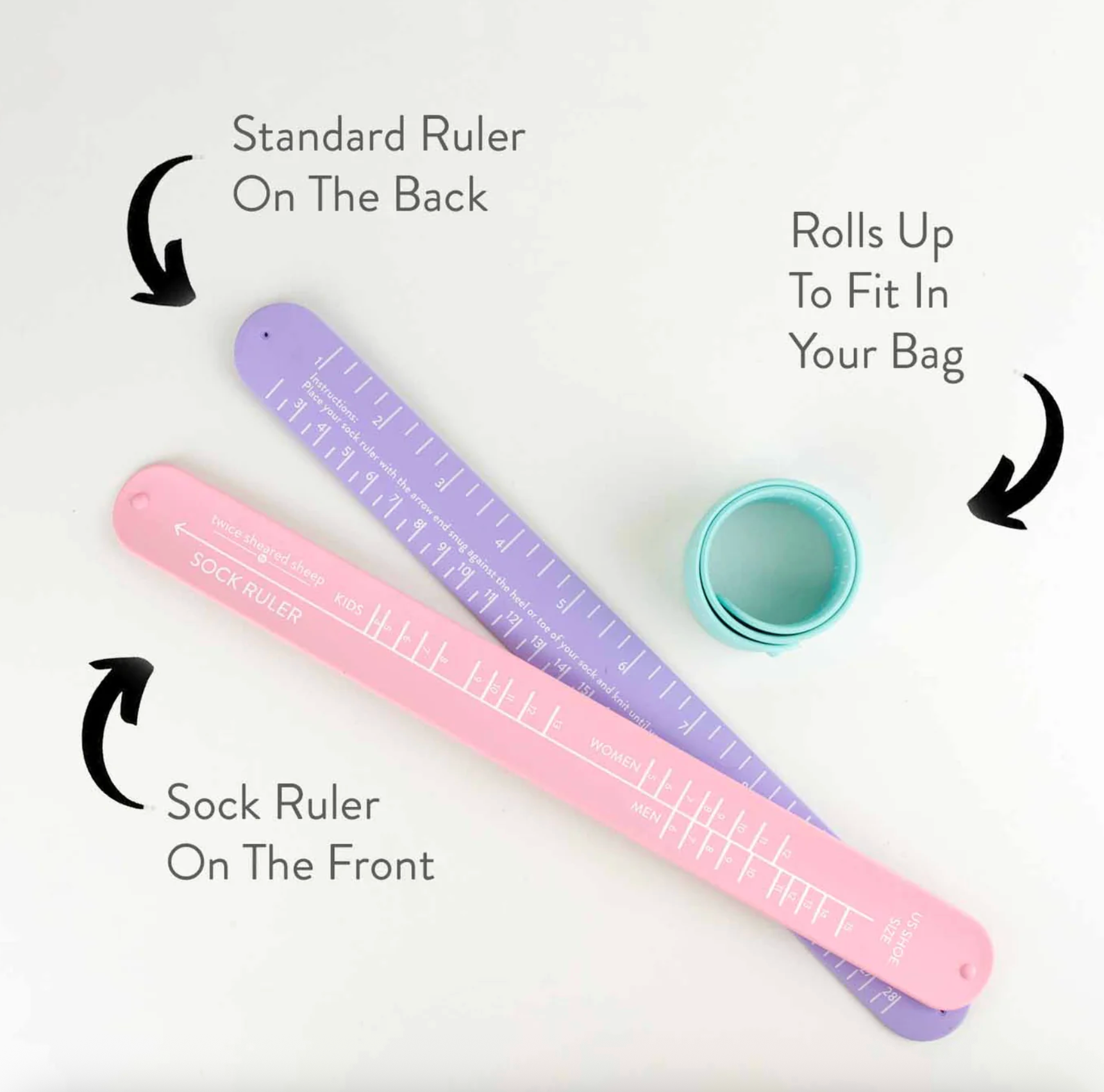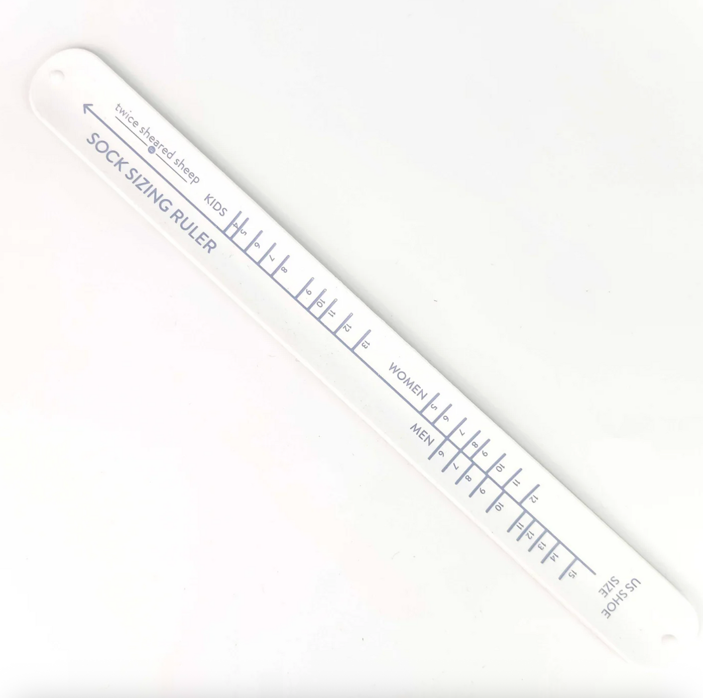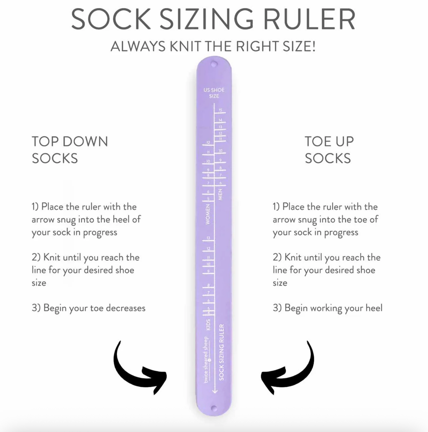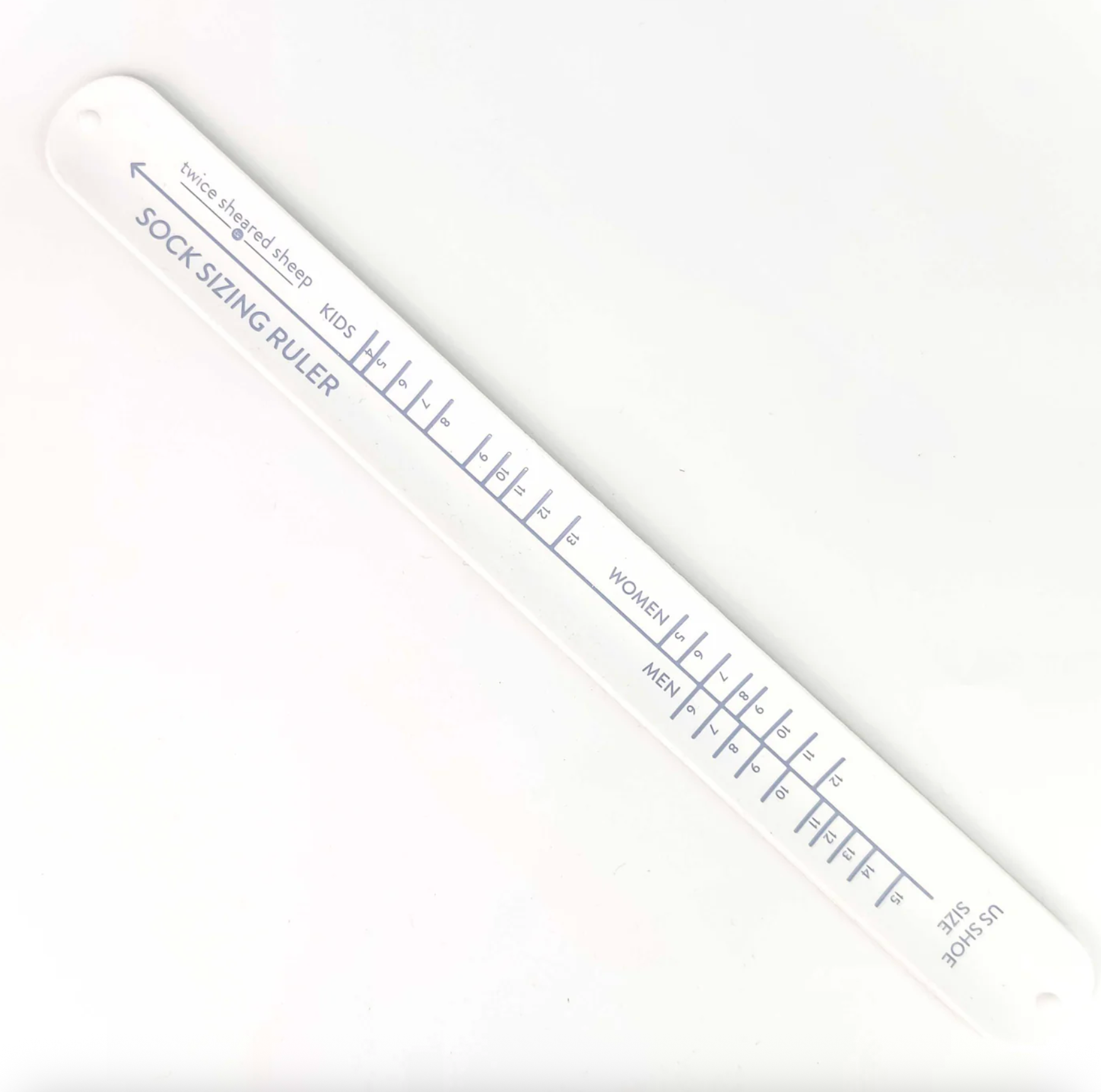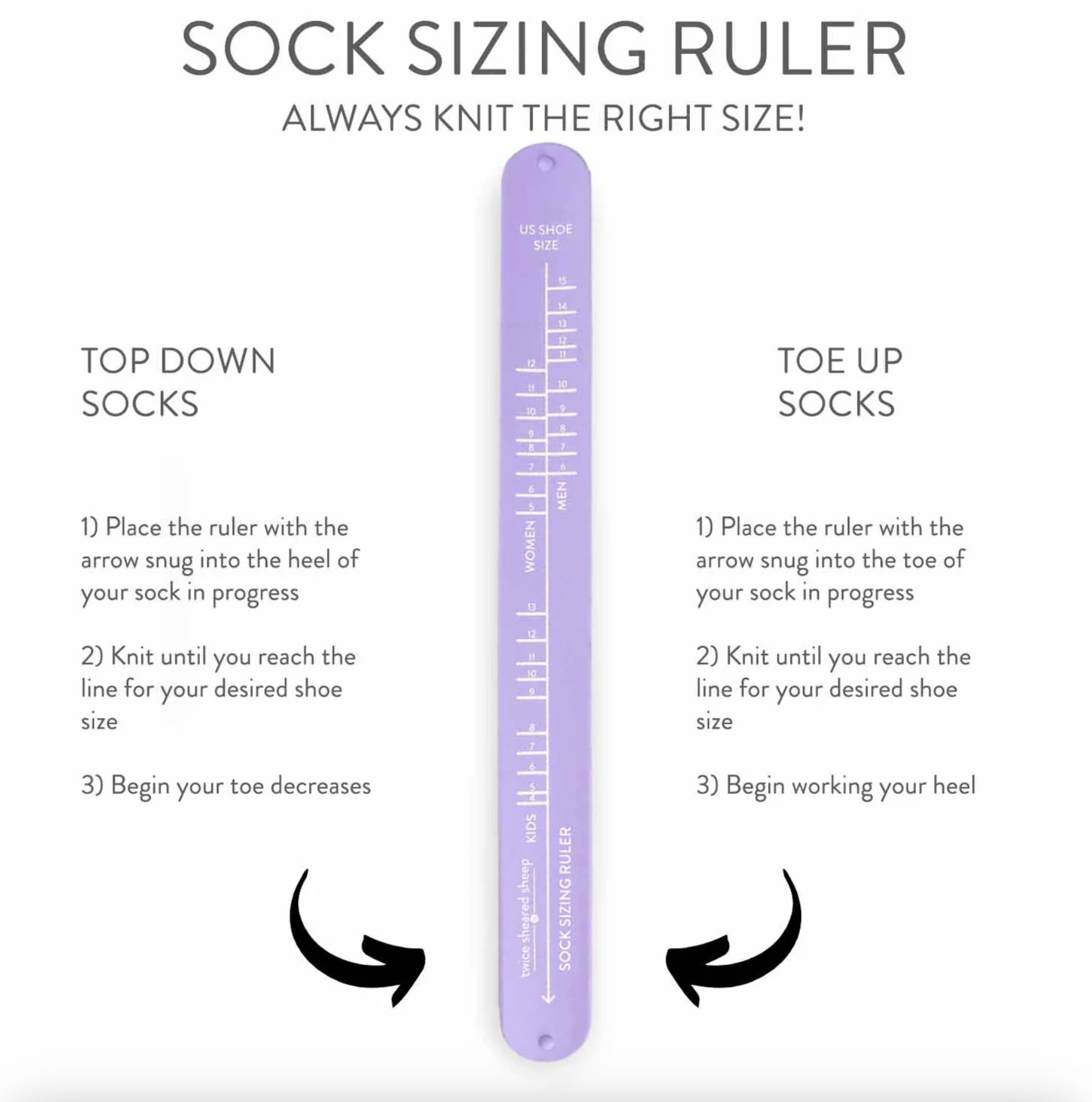Avec cette règle pour chaussettes « Sock Sizing Ruler », Twice Sheared Sheep propose un produit super facile d'utilisation! Il suffit d'insérer la règle dans votre chaussette pour voir rapidement et facilement si vous avez tricoté suffisamment de rang pour la grandeur de bas requise!