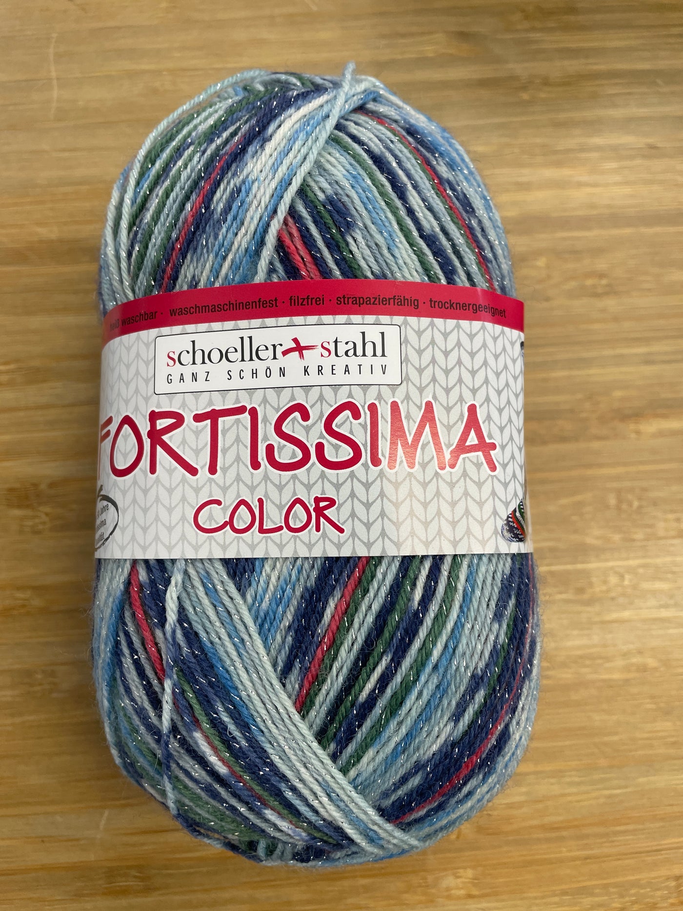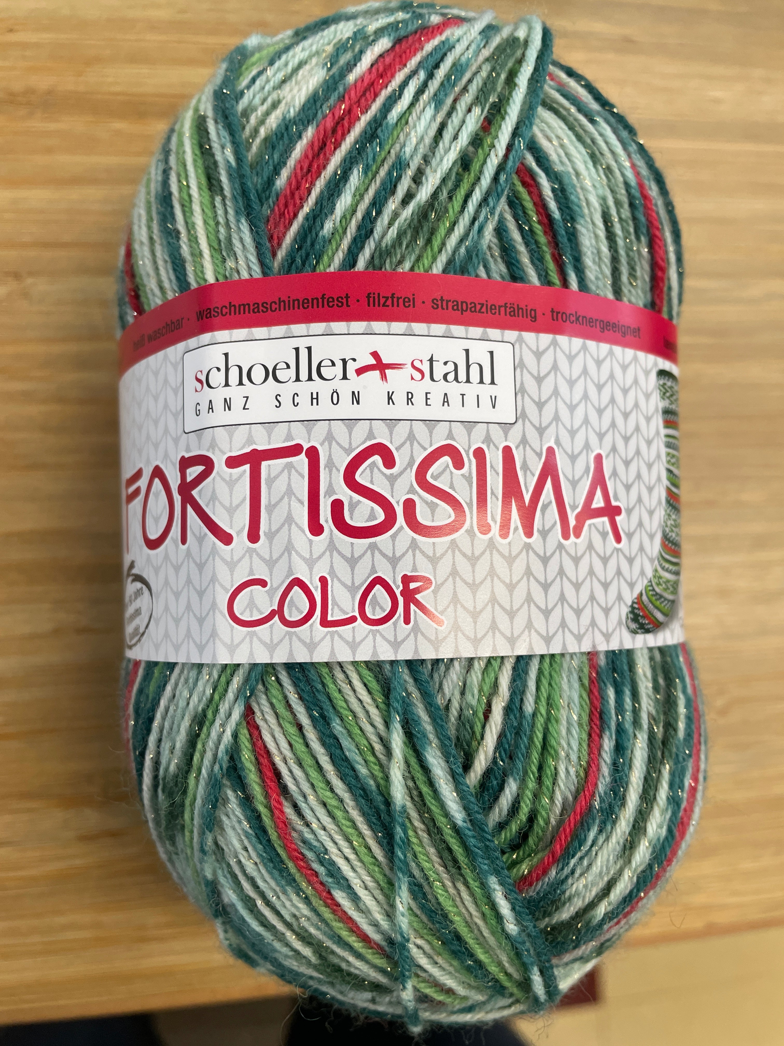 Schoeller + Stahl proposent pour le temps des Fêtes, la Fortissima, une laine à chaussette à brillance, parfaite pour donner un petit effet festif!